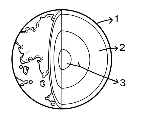Baserat på kemisk sammansättning kan jorden delas in i tre lager utåt från jordens centrum: kärna, mantel och skorpa.