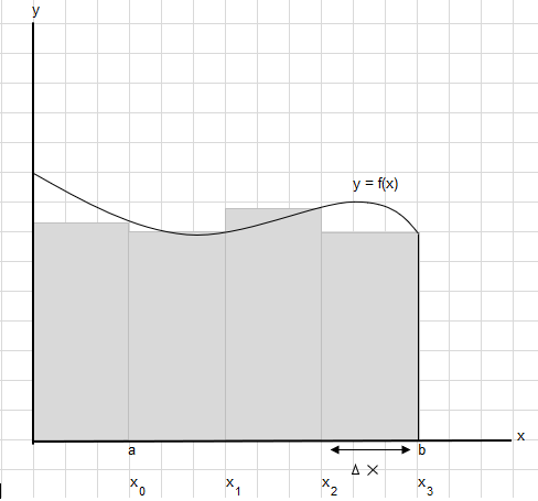 Hatiin ang lugar sa pagitan ng a at b sa pantay na mga segment upang ang lapad ng bawat parihaba ay \(\Delta x\) .